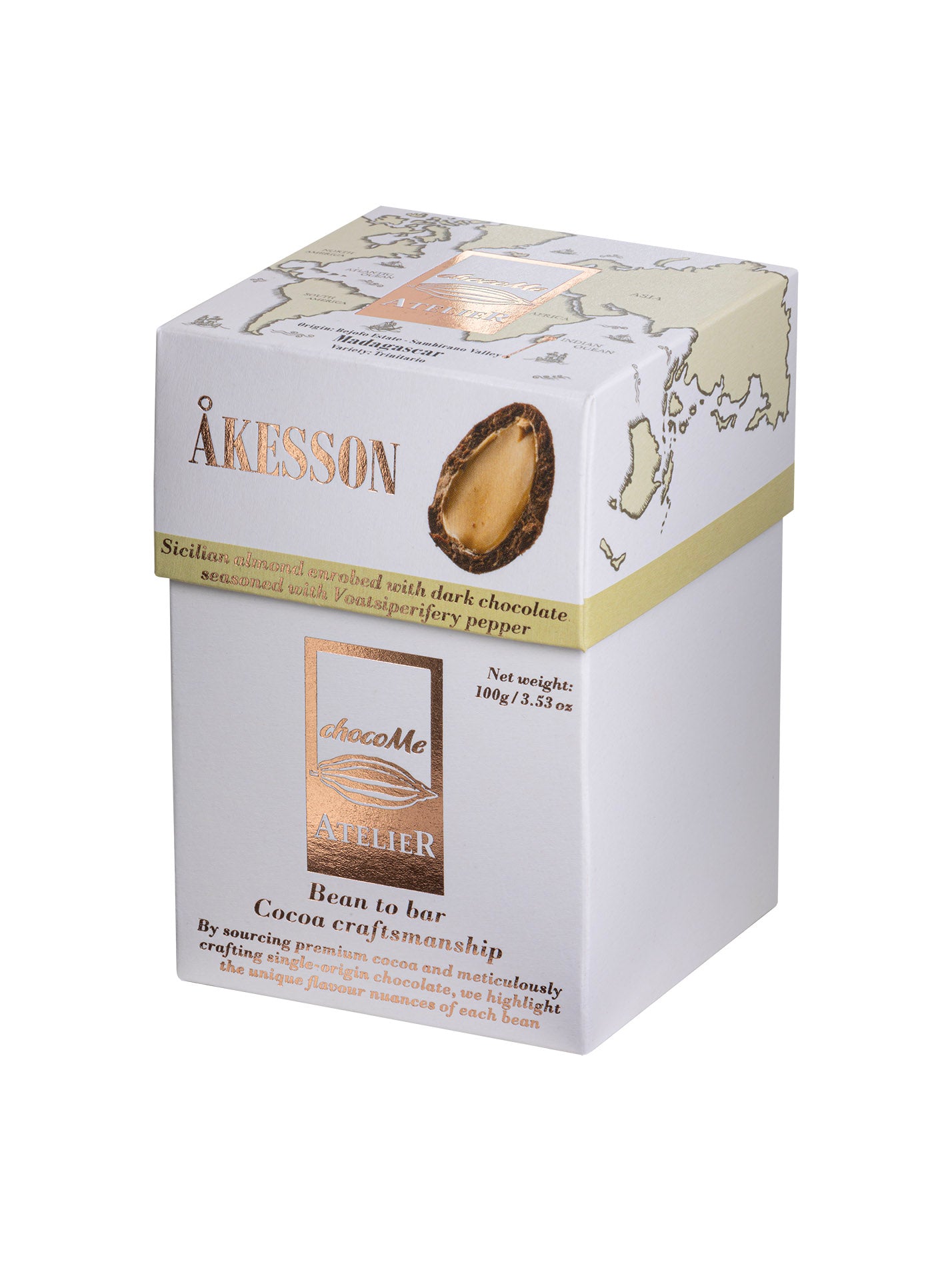 BB-RF104 Almendras Sicilianas envueltas en chocolate negro al 70% de la variedad Åkesson y Pimienta Silvestre Voatsiperiry de Madagascar